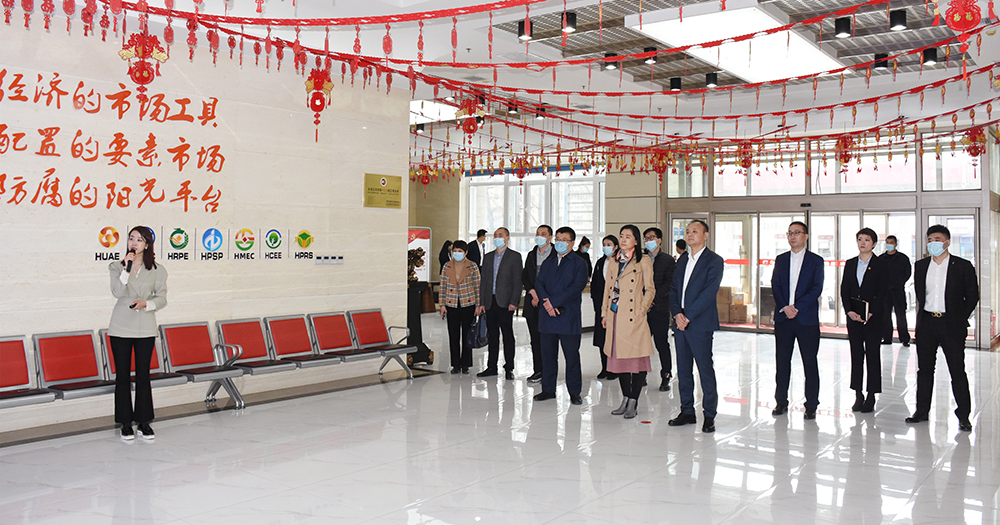 座談前,來(lái)訪客人在集團(tuán)一樓業(yè)務(wù)大廳通過(guò)講解員介紹,詳細(xì)了解了交易集團(tuán)發(fā)展情況和各板塊業(yè)務(wù)開展情況。