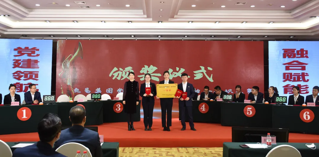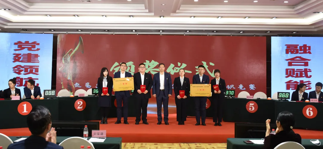 新聞中心 > 集團要聞“國資國企改革發(fā)展研究院代表隊最終以380分的優(yōu)異成績,榮獲集團黨建與業(yè)務(wù)深度融合知識競賽一等獎!”接過證書與獎牌,在聚光燈下,參賽隊員在舞臺上享受著知識帶來的榮譽與自豪。經(jīng)過2個小時緊張激烈的角逐比拼,交易集團“黨建領(lǐng)航 融合賦能”黨建與業(yè)務(wù)深度融合知識競賽于近日圓滿落下帷幕。
