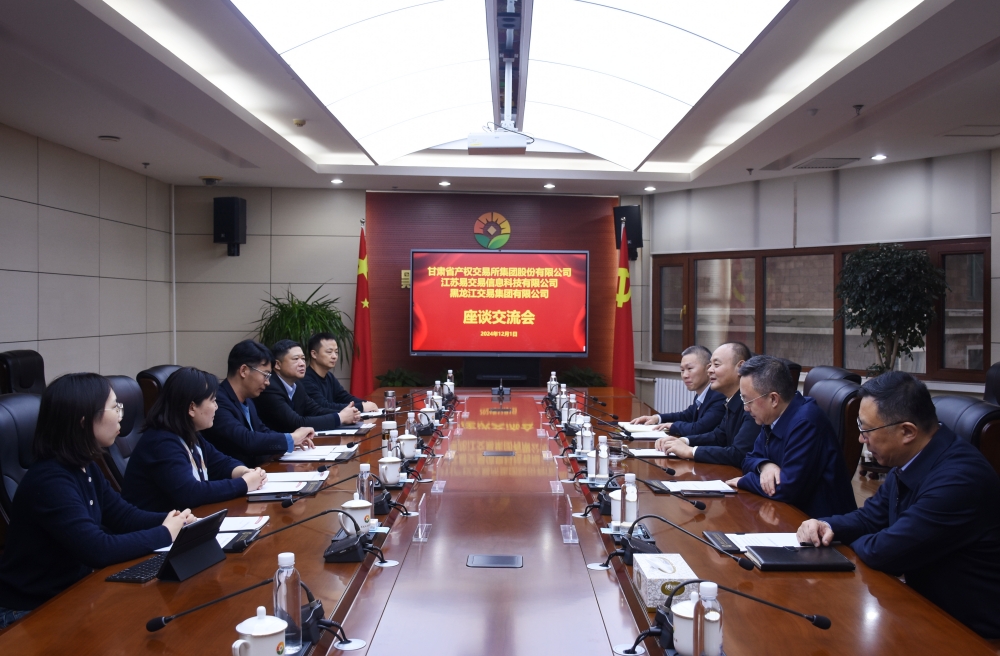 新聞中心 > 集團(tuán)要聞12月1日,甘肅省產(chǎn)權(quán)交易所集團(tuán)總經(jīng)理趙永濤,江蘇易交易信息科技公司董事長王昕一行到黑龍江交易集團(tuán)座談交流。黑龍江交易集團(tuán)黨委書記、董事長王立峰與來訪客人進(jìn)行座談。黑龍江交易集團(tuán)黨委副書記、副董事長、總經(jīng)理夏明禹,交易集團(tuán)副總經(jīng)理單勇,甘肅省產(chǎn)權(quán)交易所集團(tuán)副總經(jīng)理劉毅婧出席座談。雙方有關(guān)部門和權(quán)屬企業(yè)同志參加座談。