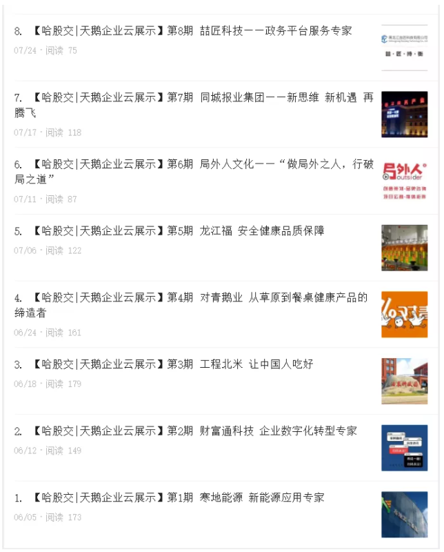 2020年,哈股交以“展示龍江企業(yè)風采,對接資本市場服務”為行動宗旨,在疫情期間推出“天鵝企業(yè)云展示”公益服務,助力企業(yè)復工復產。